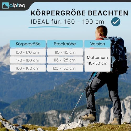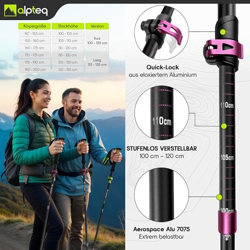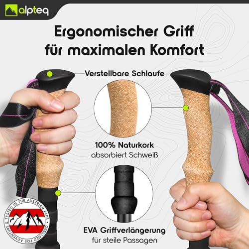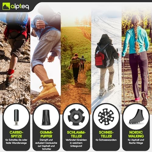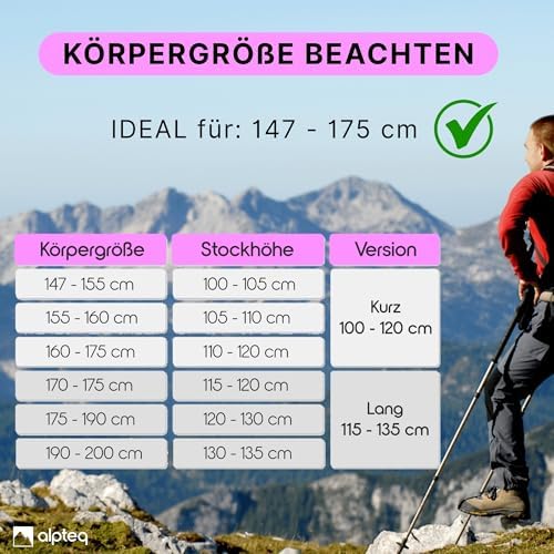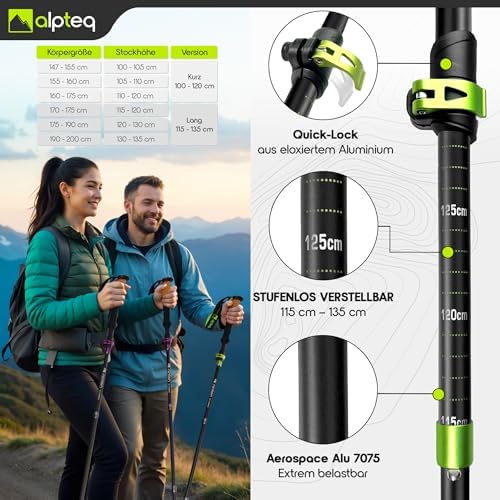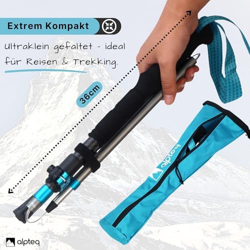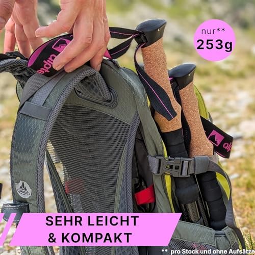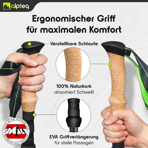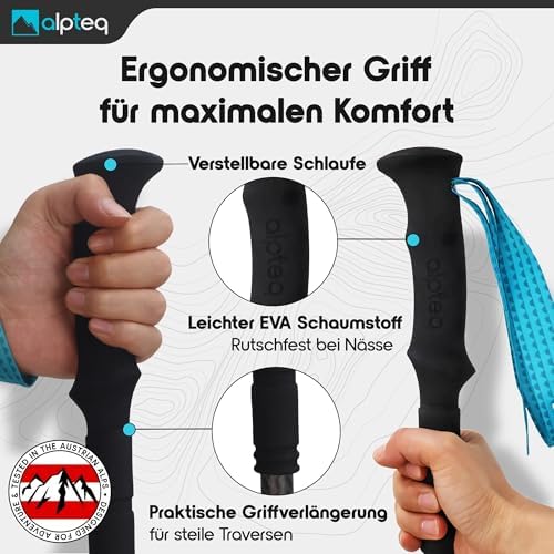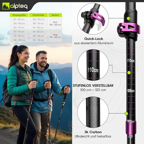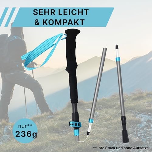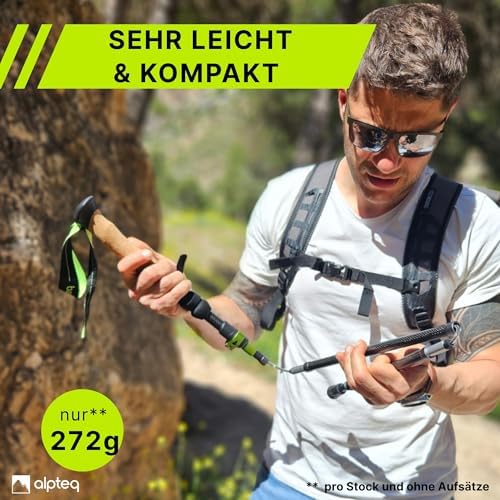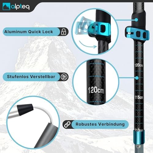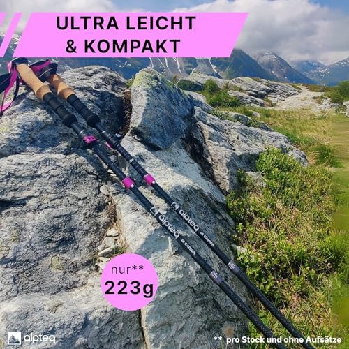 • Ultraleicht & Robust: Die Alpteq Trekkingstöcke wiegen nur 231 g pro Stück und bieten optimale Stabilität durch Carbon 3K Technologie.