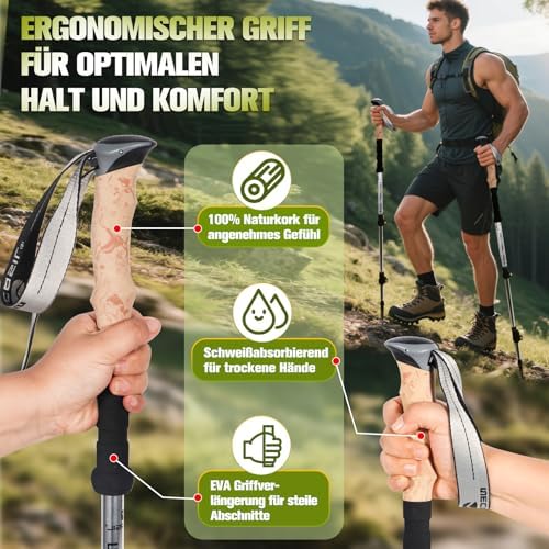 Nordic Walking Stöcke Aluminium – Ultraleichte Teleskop Wanderstöcke mit Korkgriff für Damen & Herren, ideal für Abenteu