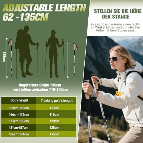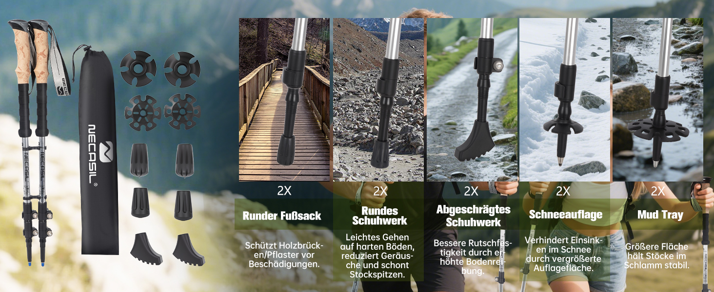 - Ideal für verschiedene Terrain: Ob Wüste, Schnee oder Bergpfade, die Wanderstöcke sind für jedes Terrain geeignet und unterstützen Ihr Abenteuer.